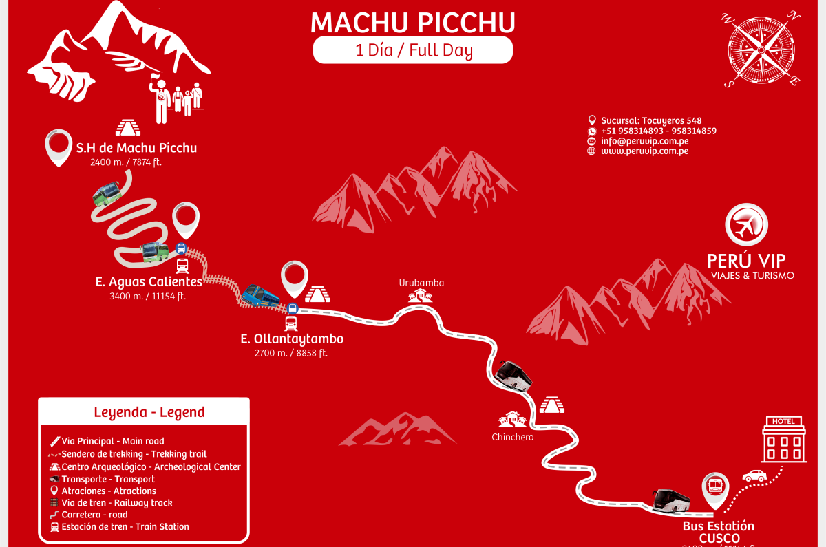El transporte de Perú Vip lo recogerá en su hotel de Cusco a las 06:30am aproximadamente y lo trasladara a la estación de tren trenes de Poroy(30 minutos). Lugar donde se toman los trenes para que usted se enrumbe al pueblo de aguas calientes o machu picchu pueblo en el tren panorámico Vistadome. (son tres horas de viaje aproximadamente), en el tren podrá disfrutar de un suculento snack, el cual está incluido en el tour. Durante este nuevo trayecto se podrá apreciar parte de la cordillera de los andes y sus imponentes nevados; como la Verónica, el clima se irá tornando más cálido y la vía férrea seguirá el curso de río Wilkamayu (o río sagrado de los Incas) en todo el trayecto. Al llegar a la estación de Machu Picchu nuestro guía estará esperando afuera con el cartel de la empresa y su nombre.. Posteriormente se toman los buses para subir a la ciudad Inca de Machu Picchu (20 minutos). Seguidamente se ingresa al conjunto arqueológico el cual está ubicado a 2430 msnm. Lugar donde su guía profesional le ofrecerá toda la información de la historia y el misterio de esta maravilla mundial, (el recorrido tiene un aproximado de 2 a 2:30 horas) .Una vez terminado el guiado se tiene tiempo libre para tomarse más fotos o relajarse en la ciudad Inca, después se sale del conjunto arqueológico para descender nuevamente en los buses al pueblo de Aguas Calientes, usted tiene tiempo libre en el pueblo para poder dar un paseo y aprovechar en almorzar. Posteriormente se aborda el tren de retorno a las 16:40pm que lo conducirá a la estación de Poroy. Aquí nuestro transporte y personal estará esperando por usted para trasladarlo a Cusco, llegando aproximadamente a las 8:30pm (El tour termina en su hotel, donde concluye el servicio).